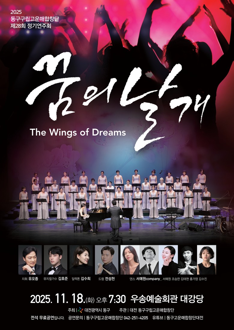 이번 연주회는 ‘꿈의 날개’를 주제로 희망과 도전, 새로운 시작을 향한 구민의 염원을 음악으로 표현한 무대로 준비됐으며, 주민 누구나 무료로 관람할 수 있다.