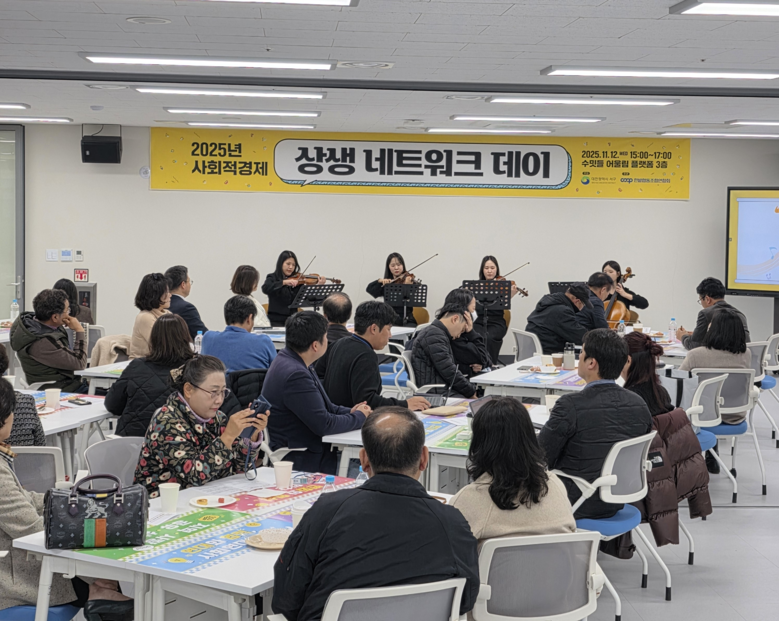 사회적기업진흥원의 사회적가치지표(SVI) 측정 및 활용 방안 안내, 한남대학교 사회혁신성장지원센터의 ‘사회연대경제의 비전과 전망’ 강연은 실무 역량 강화에 도움이 되는 내용으로 참석자들의 큰 호응을 얻었다. 이어 우수기업 3개 사의 사례 발표와 기업 간 정보 및 협력 방안을 논의하는 자리가 이어졌으며, 뤼미에르 현악 4중주단의 축하공연이 펼쳐지기도 했다.