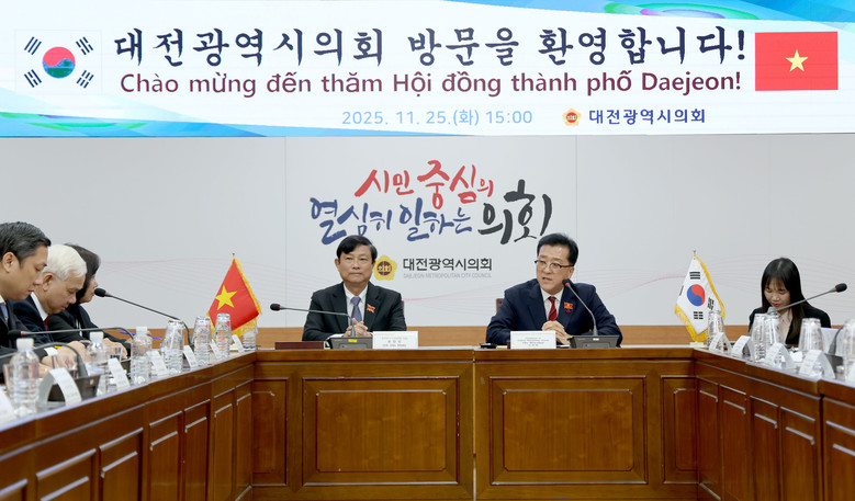 조원휘 의장은 환영사에서 “호치민시는 베트남 경제의 중심이자 동남아시아를 대표하는 도시 중 하나”라며 “오늘의 만남이 의회를 넘어 양 도시 전반의 협력을 심화시키는 계기가 되길 바란다”고 밝혔다. 이어 “대전은 대한민국 과학수도로서 다양한 기술·산업 인프라를 보유하고 있으며, 호치민시와의 지속적 연대를 통해 상호 시너지를 창출할 수 있을 것”이라고 강조했다.