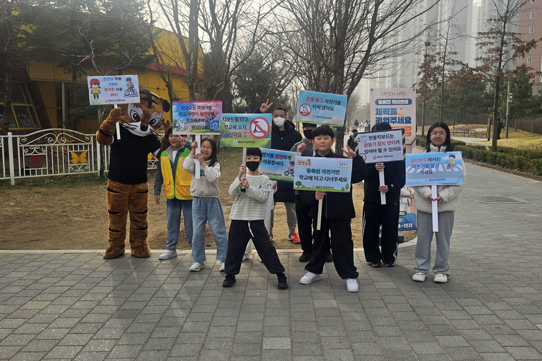특히 이날 캠페인에는 학생자치회 임원들이 주축이 되어 등굣길에 지역 주민들과 학생들에게 안전한 자전거 이용법을 알리는 다채로운 피켓을 들고 적극적으로 나섰다. 안전모 착용부터 시작해, 과속 방지, 픽시 자전거 도로 주행 금지에 이르기까지 자전거 통학과 관련한 핵심 사항들을 꼼꼼히 짚어가며 안내했다. 이러한 모습에 지나던 학부모들도 박수를 보내며 격려하였고, 자전거를 타고 오는 학생들 역시 질서정연하게 캠페인에 동참하면서 더욱 안전한 자전거 문화가 정착될 것으로 기대된다.
