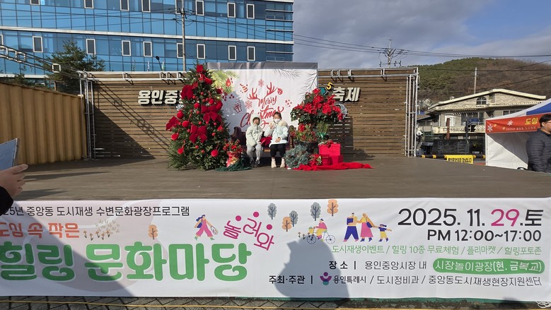 [용인시 세계타임즈=송민수 기자] 용인특례시(시장 이상일)는 11월 29일 처인구 중앙동 용인중앙시장 금복교 주변에서 ‘도심 속 작은 힐링 문화마당’ 행사를 개최했다고 3일 밝혔다.