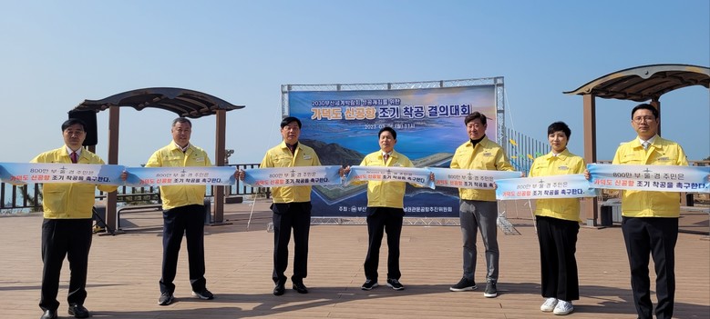 [부산 세계타임즈=이용우 기자] 부산광역시의회 건설교통위원회(위원장 박대근, 국민의힘)와 (사)동남권관문공항추진위원회(위원장 장인화)는 오늘 6일(월) 11시에 강서구 가덕도 대항전망대에서 ‘가덕도 신공항 조기 착공 촉구 결의대회’를 열었다.