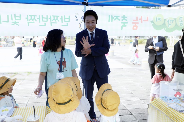 [세종 세계타임즈=이채봉 기자] 세종특별자치시의회 임채성 의장은 26일(금) 세종 금강수변공원에서 열린 세종공공형어린이집연합회(회장 육태유) 주최 ‘2025 푸른콩깍지 나눔축제’에 참석해 영유아와 학부모, 교사들과 함께 환경보호와 나눔의 의미를 공유했다.