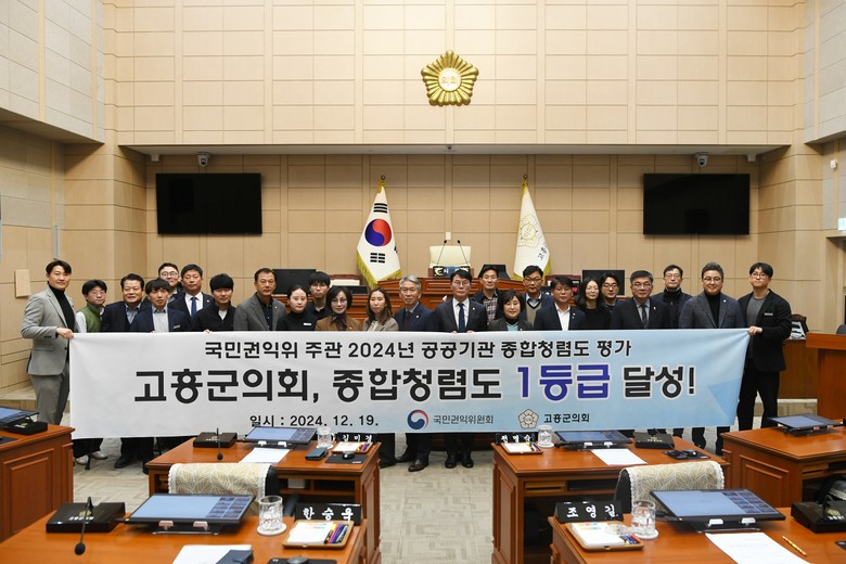 [고흥군 세계타임즈=우덕현 기자] 고흥군의회(의장 류제동)는 최근 국민권익위원회가 주관한 2024년 지방의회 기초 군의회 청렴도 종합 평가에서 최고 등급인 1등급을 획득하며 투명하고 공정한 의회 운영의 성과를 입증했다.