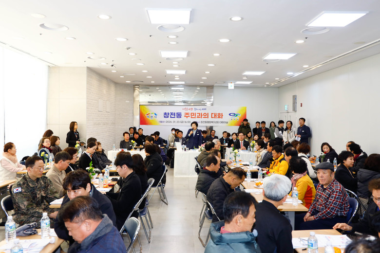 [이천시 세계타임즈=송민수 기자] 이천시 창전동은 지난 1월 23일 병오년(丙午年) 새해를 맞이하여 창전동행정복지센터 1층 대회의실에서 기관·사회 단체장 및 지역 주민 등 80여 명 모시고 김경희 이천시장과 함께 ‘2026년 창전동 주민과의 대화’를 개최했다.