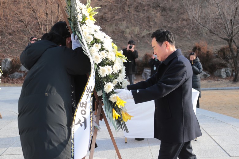 [이천시 세계타임즈=송민수 기자] 이천시의회(의장 박명서)는 지난 1일 설봉공원 내 현충탑을 찾아 헌화와 분향을 올리며, 2026년 새해 첫 공식 의정활동을 시작했다.