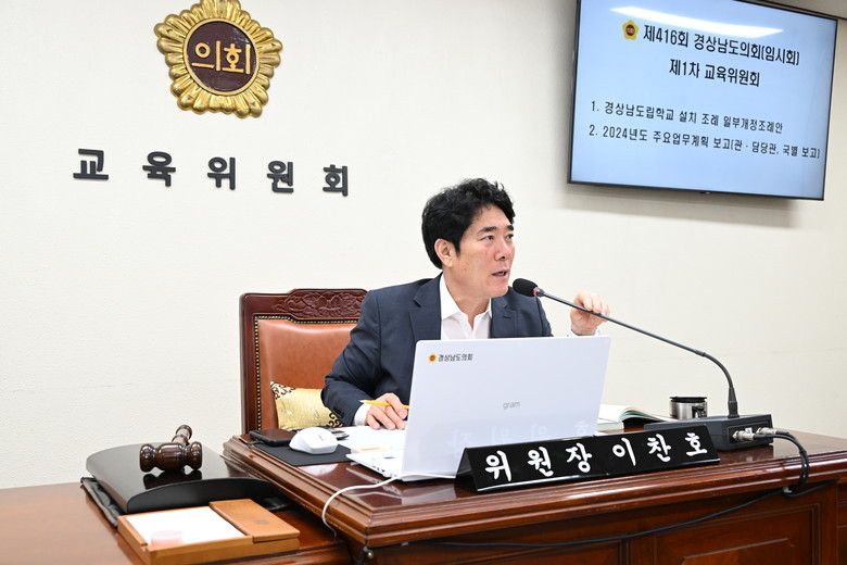 [경남 세계타임즈=최성룡 기자] 경남도의회 교육위원회(위원장 이찬호)는 12대 후반기 원구성 후 처음 개최된 16일 제1차 회의에서「경상남도 도립학교 설치 일부개정조례안」을 원안가결하고 경상남도교육청 소관 주요 업무계획 현황 보고를 받았다.