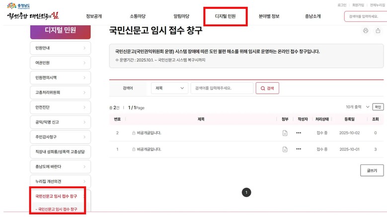 도 관계자는 “국민신문고 서비스 장애로 인한 불편이 최소화될 수 있도록 최선을 다하겠다”며 “도민 여러분께서는 도 누리집 내 임시 접수 창구를 적극 활용해 주시기 바란다”고 말했다.