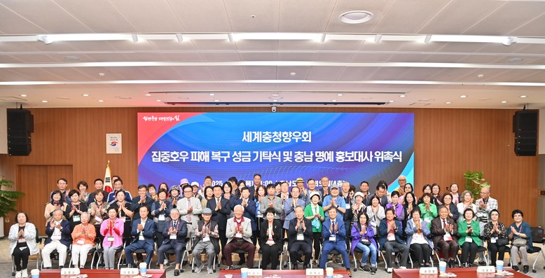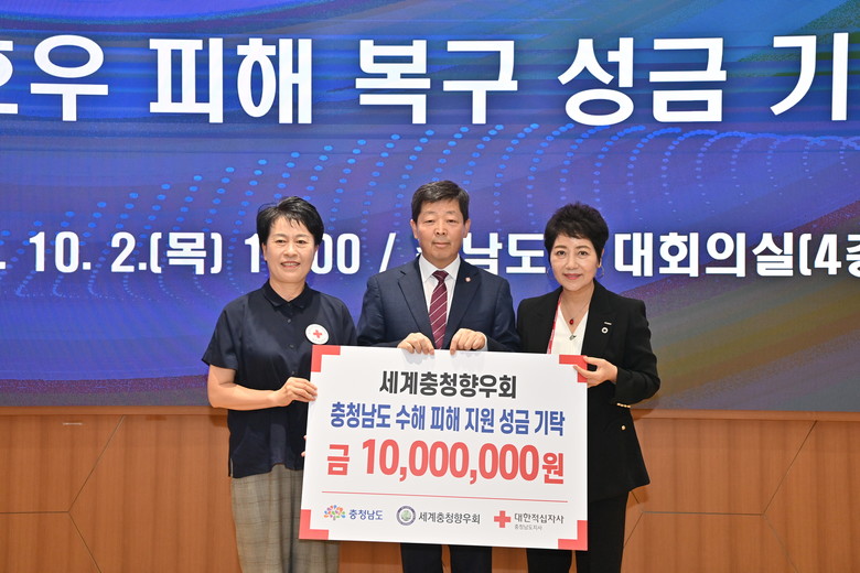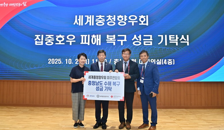 이 세계충청향우회장은 “지난해에 이어 올해도 고향 충남에 집중호우로 큰 피해가 있었던 것으로 안다. 복구에 조금이나마 힘이 되길 바란다”라며 “충남 명예 홍보대사로 위촉된 만큼 세계충청향우회 회원들과 함께 충남을 알리는 데 기여할 것”이라고 말했다.