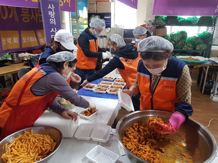 이날 봉사에는 유희자 단장을 비롯한 7명의 봉사자 회원들이 오전10시~오후2시까지 4시간동안 닭강정을 직접 만들어서 전달을 하였다.