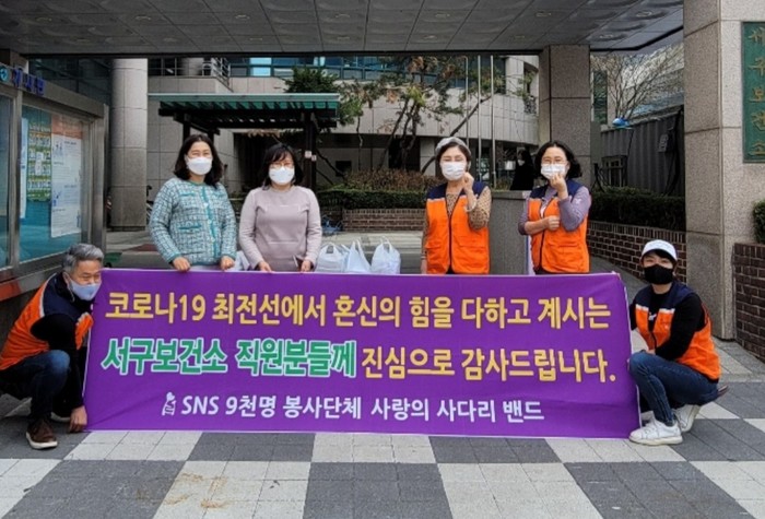 [대전=세계타임즈 이채봉 기자] 코로나19 상황에서도 비대면 봉사로 다양한 나눔을 실천하고 있는 SNS 9천명 대전시 봉사단체 사랑의 사다리 밴드(리더 이정제)는 15일 오후3시, 코로나19 최전선에서 애쓰고 있는 서구보건소에 닭강정 100개를 전달하면서 우리 사회의 따뜻한 사랑을 실천 하였다.