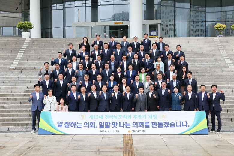 [전남 세계타임즈=우덕현 기자] 전남도의회(의장 김태균)는 7월 16일, 200만 도민의 염원을 받들어 일 잘하는 의회를 구현하겠다는 의지를 다지기 위한 후반기 개원식을 초의실에서 개최했다.