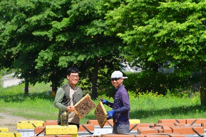 [청도군=세계타임즈 김승일 기자] 아카시아꽃 향기가 진해지는 이때 더욱 손길이 바빠지는 곳이 바로양봉농가이다. 화양읍 서상리 박태준(45세)씨는 초등학교 4학년때부터 부친을 따라 양봉작업을 함께하며 2대째 가업을 이어가고 있다. 지난 10일 각남면 일대에서 처남과 함께 벌 내검 작업이 한창인 박태준씨를 카메라에 담아 보았다. 현재 청도군에는 200여 양봉농가가 있다.