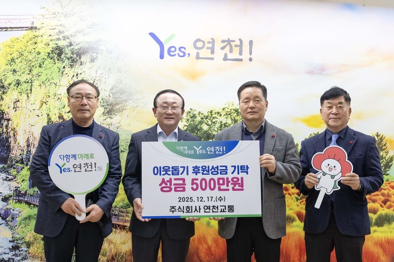 연천군 관계자는 “관내 소외계층을 위한 따뜻한 나눔을 실천해 주고 계신 연천교통 강대견 대표님을 비롯한 임직원에게 진심으로 감사드린다”며 “기탁해 주신 성금은 복지 사각지대 어려움을 겪고 있는 소외된 이웃을 위해 투명하고 소중하게 사용하겠다”고 말했다.