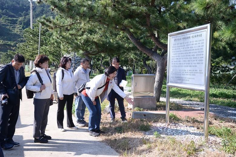 현장 활동 참여자들은 두룩여 사건 현장을 선상에서 둘러봤다. 이어 남면 안도리에 도착해 이야포 평화공원과 희생자 백비를 답사했다.