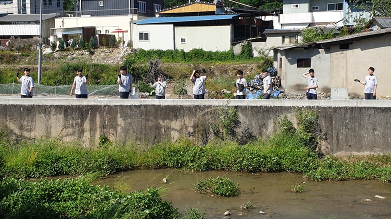 이번 활동은 지난 5월 29일 진행된 STEAM 학부모 공개수업의 연장선에서 이어진 것이다. 기술·가정 교과 시간에 EM(유용 미생물) 발효액의 원리와 효과를 배운 학생들은 황토와 함께 친환경 흙공을 직접 제작하고, 발효 과정을 거친 뒤 이날 마을 하천에 정성껏 흘려보내며 작은 생명의 씨앗을 심는 시간을 가졌다. 또한 하천을 따라 걸으며 버려진 비닐, 병, 플라스틱 등 쓰레기를 수거하는 정화 활동도 함께 진행됐다. 손에는 흙공, 가슴엔 마을에 대한 애정이 담긴 학생들의 모습은 지역 주민들에게도 따뜻한 인상을 남겼다.