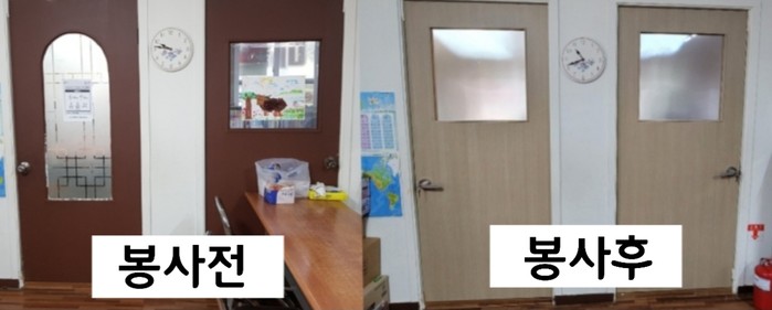 천정훈 집수리 봉사단장은 “오늘 노후된 출입문 교체봉사로 아이들이 쾌적한 환경에서 공부를 할 수 있게 되어서 행복하다.”고 말했다.