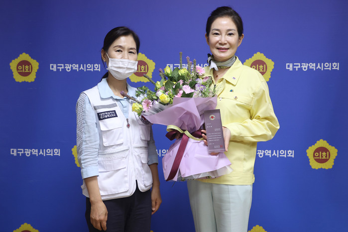 | ▲ 왼쪽 대한적십자사 대구지사 박선영 사무처장, 오른쪽 배지숙 의장 |