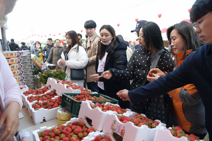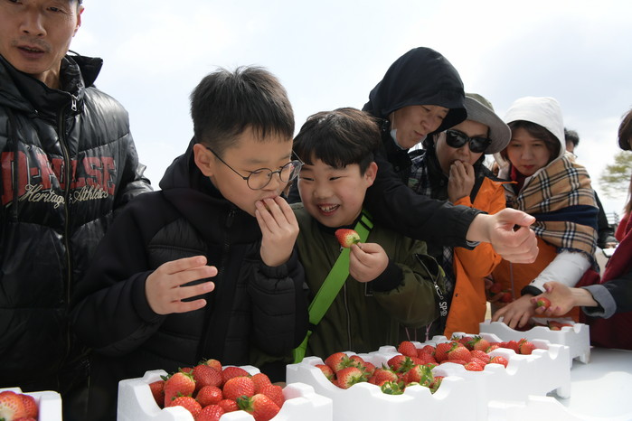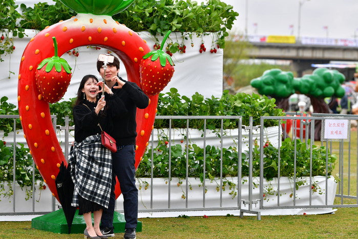 또, 봄꽃정원과 조각공원에 활짝 핀 연산홍, 페츄니어, 팬지, 예술조각작품이 어우러져 화사한 봄기운을 느꼈으며, 실제 수확 중인 딸기베드 앞에는 하트 포토존을 설치해 관광객들의 많은 호응을 얻었다.