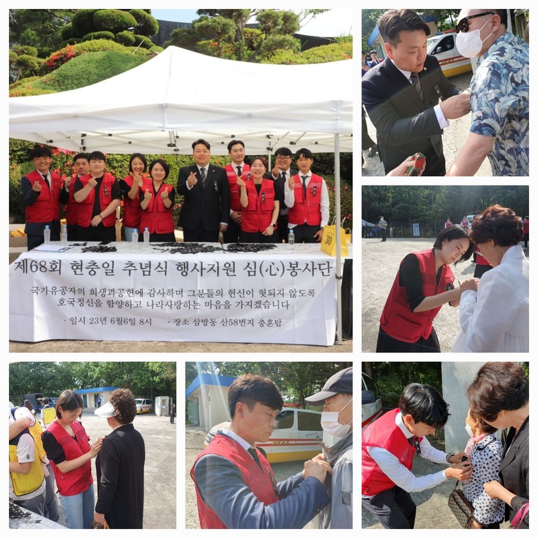순국선열의 희생을 기리기 위해 진행된 이번 행사에서 심봉사단은 추모리본을 달아드리고 추념식 행사장을 안내하는 등의 봉사활동을 수행했다.