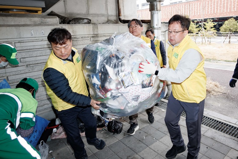 참가자들은 무단 적치물을 철거하고 광장과 환승센터 주변을 물청소했다. 꽃도 심으며 환경을 정비했다.
