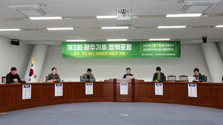박필순 광주시의회 기후특별위원장이 좌장을 맡았고, 김승완 충남대학교 교수와 이유진 녹색전환연구소 부소장이 먼저 발제했다.