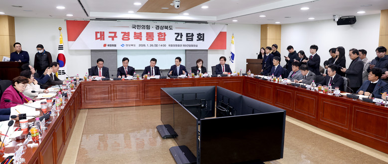 [경북 세계타임즈=한윤석 기자] 경상북도(도지사 이철우)와 국민의힘(경북도당위원장 구자근)은 26일 국회의원회관에서 대구경북통합 간담회를 열고 지역 국회의원의 다양한 의견을 수렴하고 국회와의 협력방안을 논의했다.