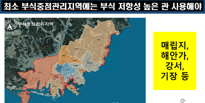 ◈ 해안 특성상 부산은 토양염도 매우 높아 부식우려지역은 관종 개선해야