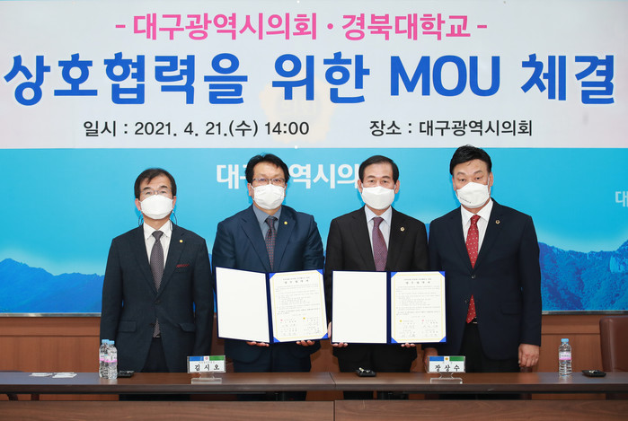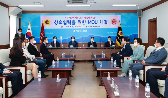 이날 대구시의회에서는 장상수 의장이, 경북대학교에서는 총장을 대신하여 김시오 대외협력부총장이 참석하였으며, 양 기관은 함께 협약서에 서명을 하고 기념 쵤영을 하면서 항후 긴밀한 협력을 약속하였다. 이후 실무적인 협력은 대구시의회 운영위원회와 경북대 사회과학대학이 맡기로 했다.