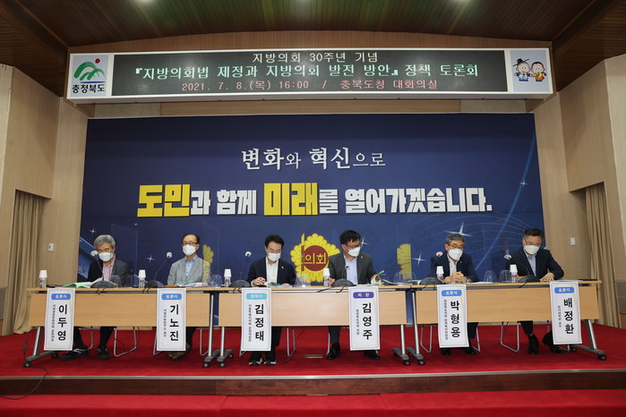[충북=세계타임즈 이현진 기자] 충북도의회는(의장 박문희) 8일 지방의회 부활 30주년을 맞이해 「지방의회법 제정과 지방의회 발전 방안」이란 주제로 도청 대회의실에서 정책토론회를 개최했다.