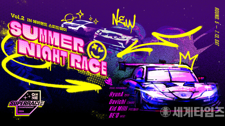[세계타임즈=방춘재 기자] CJ대한통운이 후원하는 2024 오네(O-NE) 슈퍼레이스 챔피언십 5라운드가 13일 에버랜드 스피드웨이에서 나이트 레이스로 펼쳐진다. 국내 최상위 슈퍼 6000 클래스를 비롯해, GT/GT4 클래스, 프리우스 PHEV 클래스, 알핀 클래스, 루벡스 M, 래디컬 컵 코리아가 한날에 펼쳐진다. 하루종일 총 7개의 클래스 경기를 즐길 수 있다.