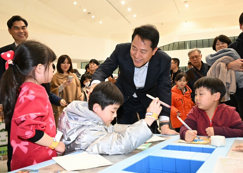 | ▲ 오세훈 서울시장이 1일(일) DDP에서 열린 '서울AI페스티벌 2026'에서 참가 어린이를 응원하고 있다. |