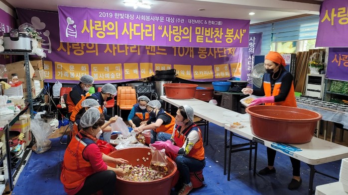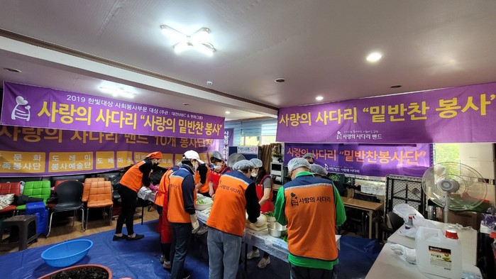 이날 봉사는 오전9시부터 대덕구 중리동 사랑의 사다리 밴드 사무실에서 청태무침, 양파초절임, 무우짱아치 3가지 밑반찬을 만들어서 편부 및 독거어르신 10가정, 지체장애인 10가정, 시각장애인 10가정 발달장애인 10가정등 40가정에 오후1시에 직접 가정으로 배달을 하였다.