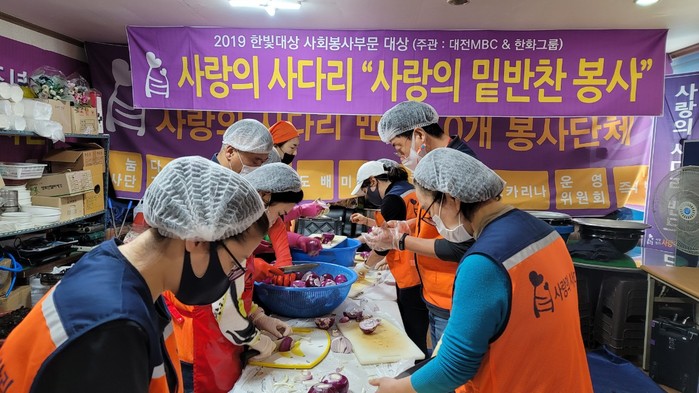 사랑의 사다리 밴드 밑반찬 봉사는 회원들의 후원금으로 매주 금요일 오전 9시에 동구-대덕구-서구-유성구-중구 순으로 각 구별로 소외계층 30가정에 3종류의 밑반찬 봉사를 하고 있다.