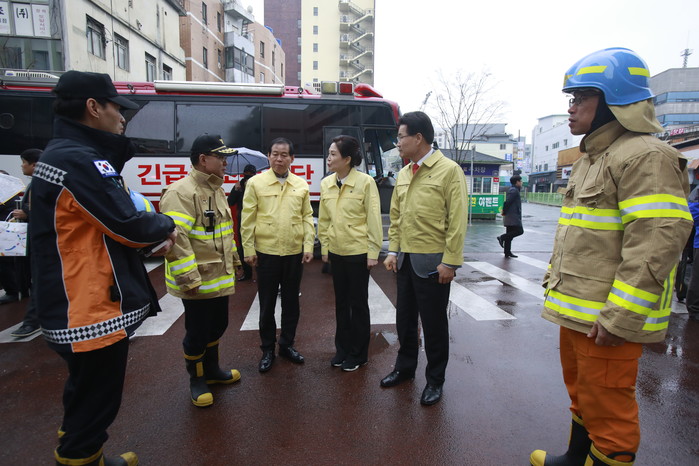 [대구=세계타임즈 한성국 기자] 대구광역시의회 배지숙 의장과 장상수 부의장, 김규학 의원(자유한국당 대구시의회 원내대표) 등은 대보빌딩 대보사우나 화재현장을 방문하여 소방관계자로부터 화재수습 상황을 보고받고 관계자들의 노고를 격려했다.