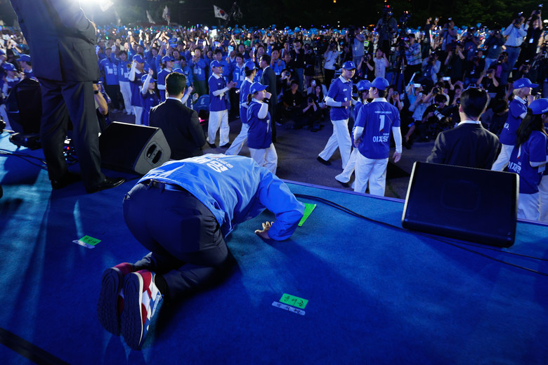 애국가 제창 후 지지자들에게 큰절로 마지막 유세 마무리