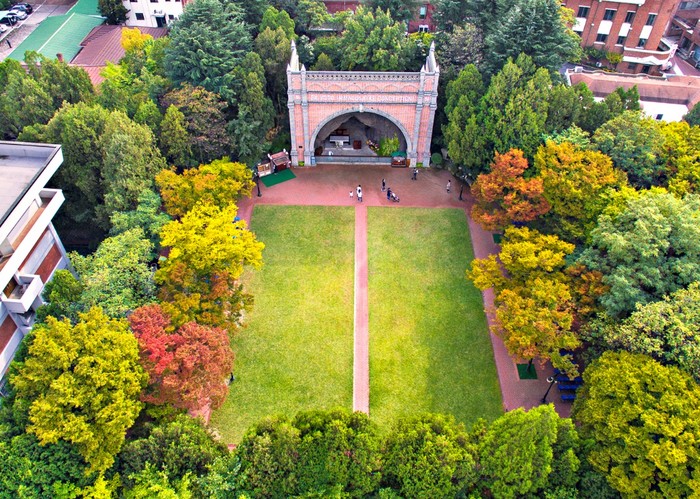 ‘미스터 선샤인’에서 현실에서는 이루어질 수 없는 주인공 유진(이병헌)과 애신이 미국 뉴욕에서 평화로운 시간을 보내는 상상속 장면의 배경이 바로 이 곳이다. 대명캠퍼스는 모래시계, 동감, 박쥐, 검은 사제들 등 100여편에 달하는 영화와 드라마가 촬영된 명소로 사시사철 아름다운 곳이다.