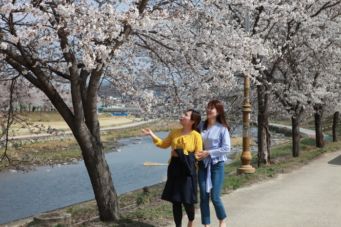 영동군민의 문화·휴식공간인 영동천변이 화사한 벚꽃들로 가득 덮였다.