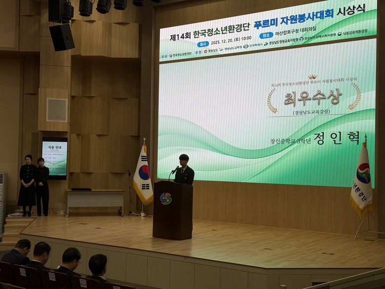 한편 최우수상 수상자 정인혁 학생은 “우리나라의 기후변화가 점점 뚜렷해진다, 우리 학생들의 환경실천과 봉사를 통해 기후위기를 극복하고 희망적인 미래를 맞이할 수 있기를 바란다.”고 수상소감을 말했다.
