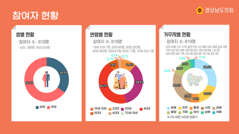 경상남도의회 소통홍보담당관은 “이번 조사에서 나온 의견은 내년 도의회 의정활동에 적극적으로 반영될 것”이며, “앞으로도 도민과 소통하는 의회를 만들기 위해 최선을 다하겠다”고 밝혔다.