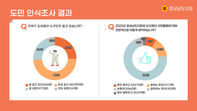 이번 조사는 지난 7월에 개원한 ‘제12대 경상남도의회’에 대한 도민 인식과 의견을 의정활동에 반영하기 위해 실시됐다.