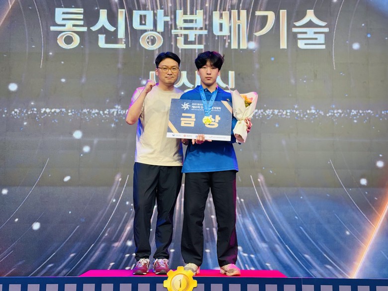 | ▲ 통신망분배기술 금메달(왼쪽부터 지도교사, 학생) |