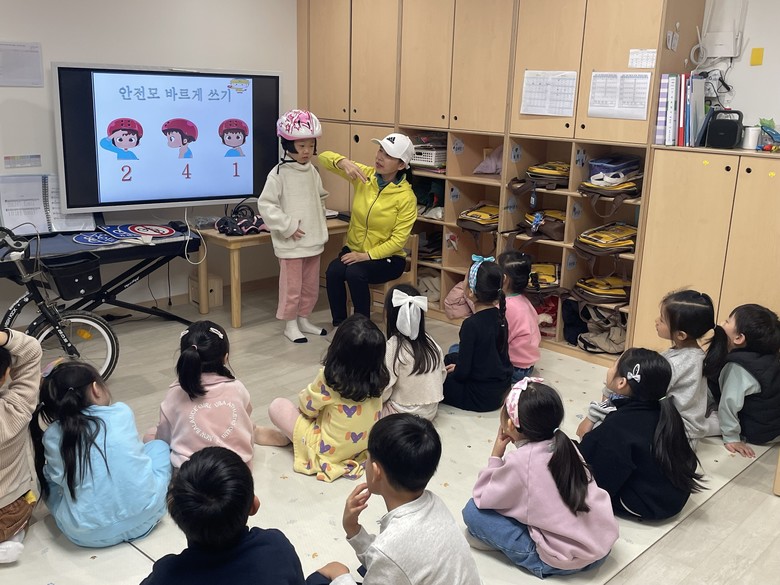 아이들은 안전한 출발‧정지 방법, 자전거 기본 조작법, 올바른 통행 요령 등을 놀이형 방식으로 자연스럽게 익히며 눈높이에 맞춘 집중 교육을 받았다. 교육을 수료한 유아에게는 이수증도 전달해 성취감을 더했다.