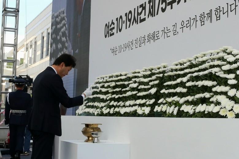 [전남 세계타임즈=우덕현 기자] 전라남도의회 서동욱 의장은 19일 고흥문화회관 광장에서 열린 여순 10·19사건 제75주기 합동 추념식에 참석했다.