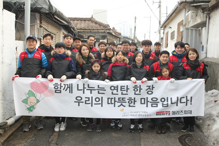 [세계타임즈 이채봉 기자]메리츠화재(대표이사 김용범)가 23일 노원구 상계동 일대에서 ‘사랑의 연탄 나눔’ 봉사활동을 진행했다.