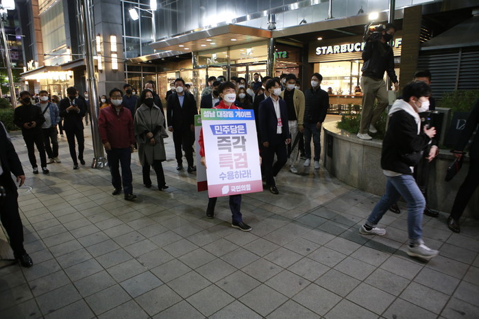 [세계타임즈 이진화 기자]국민의힘 이준석 대표가 18일 오후 부산 부산진구 NC백화점 서면점 앞에서 '성남 대장동 게이트 민주당은 즉각 특검 수용하라!'라고 적힌 피켓을 어깨에 메고 '이재명 대장동 게이트 특검 촉구' 도보 1인 시위를 벌였다.