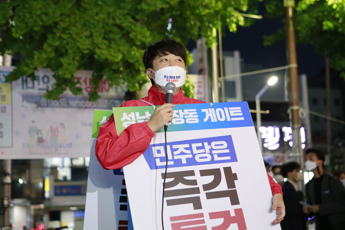 국민의힘 이준석 대표가 18일 오후 부산 부산진구 NC백화점 서면점 앞에서 '대장동 게이트 특검'을 촉구하는 도보 1인 시위를 벌이며 인사말을 하고 있다.