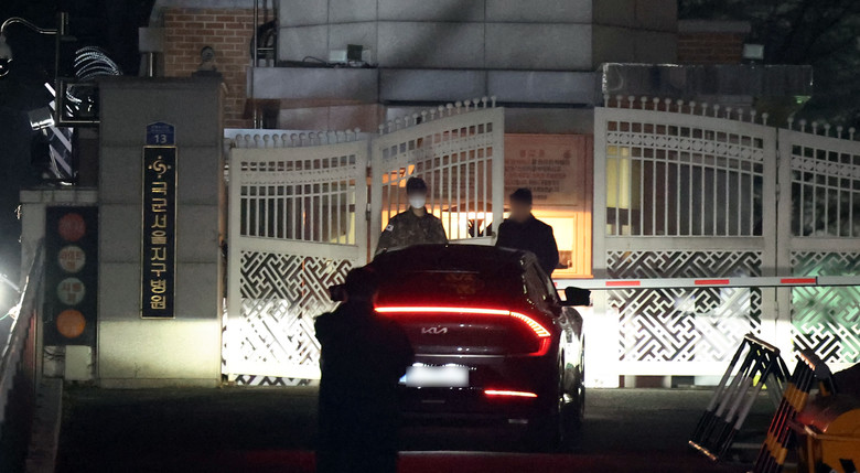 사진은 이날 밤 관계자들이 국군서울지구병원 정문을 지키는 모습. 2025.1.21