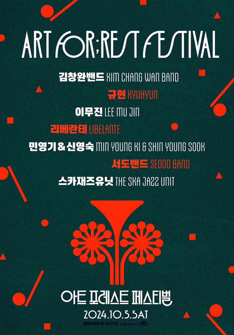 올해 10월 5일 (토) 서울 송파구 올림픽공원 88잔디마당에서 열리는 ‘아트 포레스트 페스티벌’은 김창완밴드를 비롯해 규현, 이무진, 리베란테, 민영기&신영숙, 서도밴드, 스카재즈유닛 등 화려한 라인업을 공개하며 폭발적인 관심을 집중시켰다.