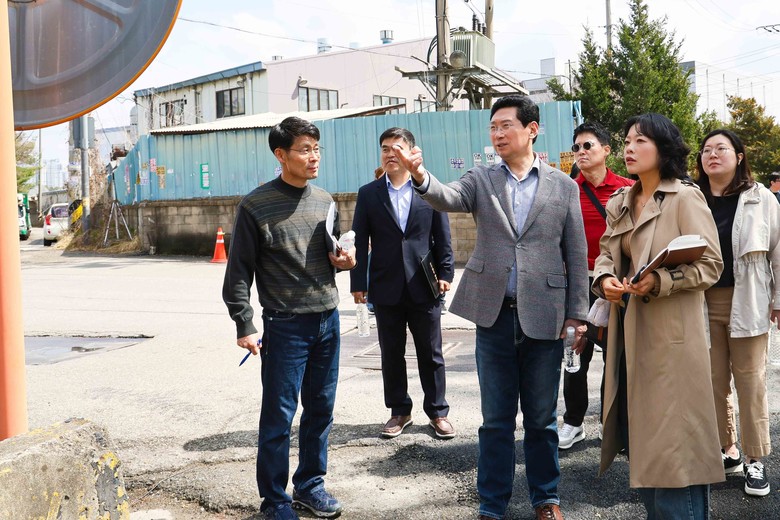 이 시장은 특히 학생들이 이용하는 도로 옆 인도와 골목길 등을 살피며 개선할 점들을 학부모 등과 논의했다.